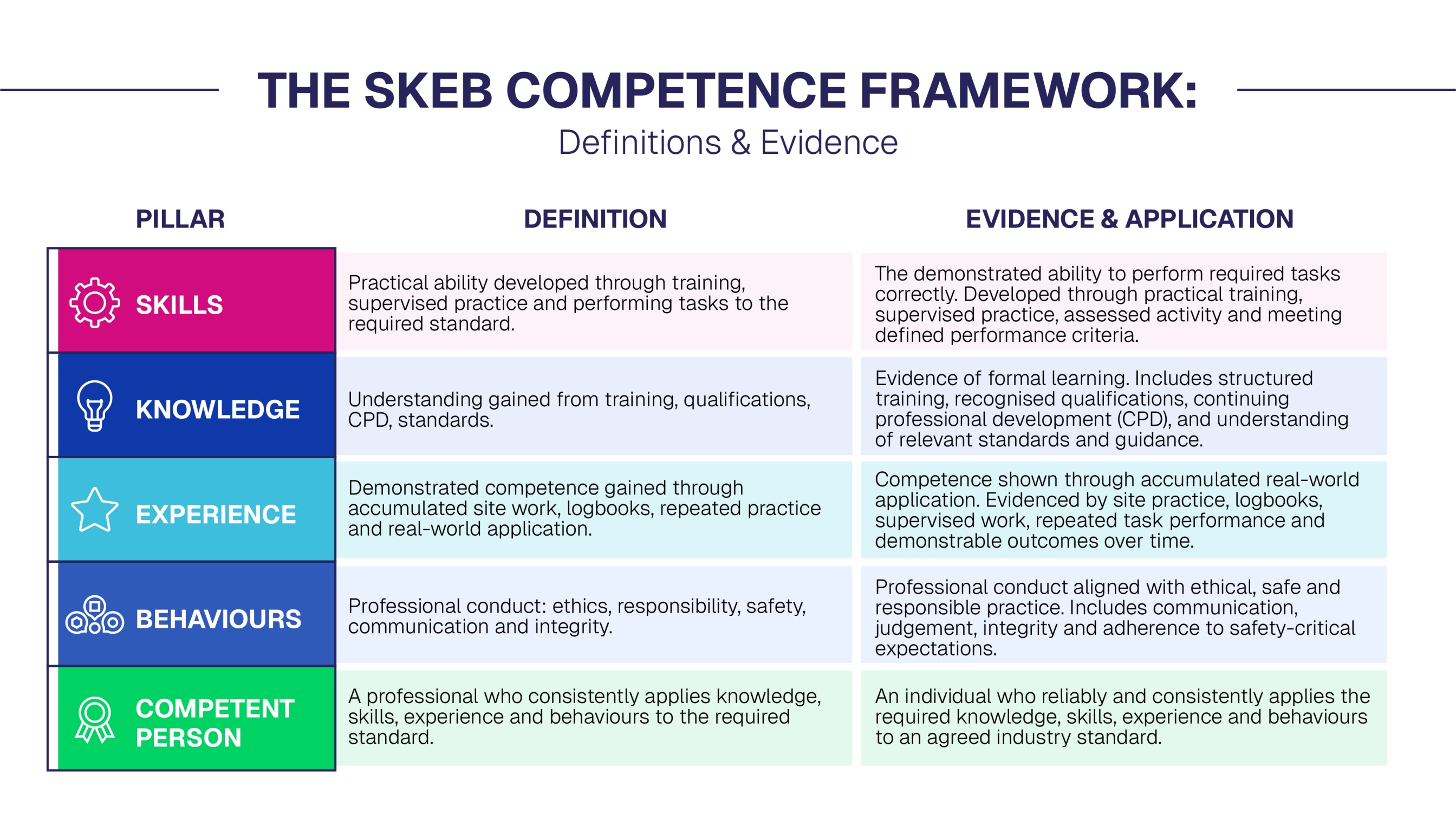 The SKEB Competence Pyramid provides a clear way to define competence, evidence it, and maintain it over time. It sets out what must be present, what order matters, and why ongoing learning is not optional in safety-critical work.