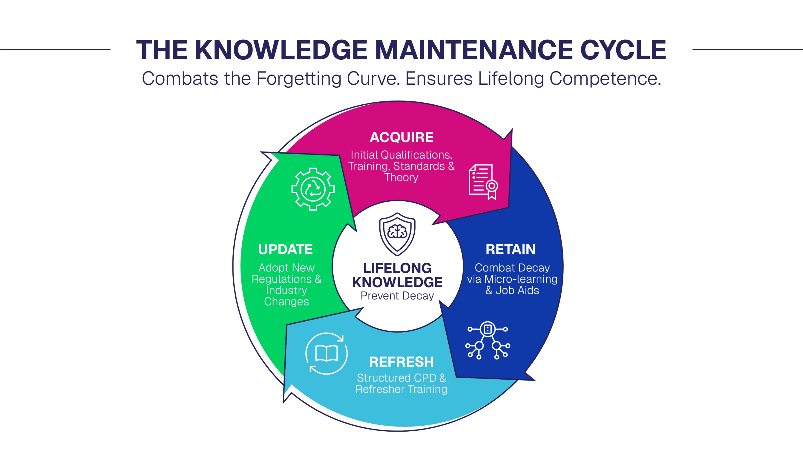 To counter knowledge decay and the forgetting curve, competence requires a continuous cycle: